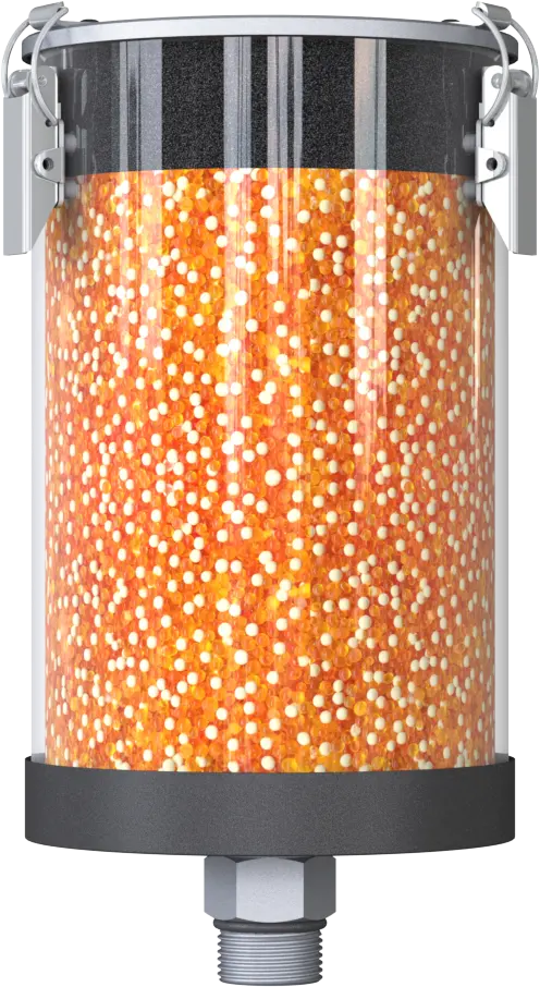 GIEBEL Xdry® (D): Ensures effective drying of the air flowing through and indicates by changing color from orange to green when it is time to replace the adsorber.