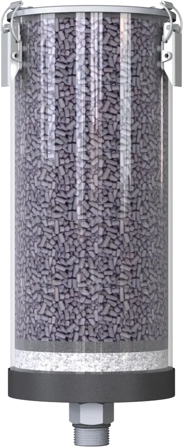 Plastic housing (A): Protects the inner workings of the adsorber. The refillable plastic housing is durable and UV-resistant.
