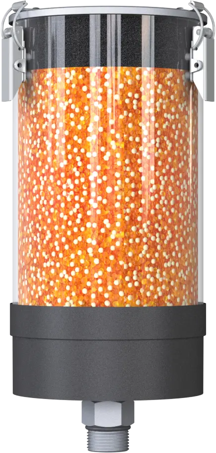 GIEBEL Xdry® (D): Ensures effective drying of the air flowing through and indicates by changing color from orange to green when it is time to replace the adsorber.